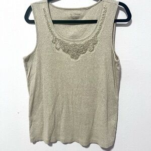 Chico's Cream Tank Top with Embellished Details MEDIUM