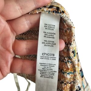 Embrace comfort and style with this Chico's cardigan, featuring a cozy open-front design in cream and tan tones. The medium-weight knit offers a soft drape, while the ruffled trim adds a feminine touch to this versatile layering piece.