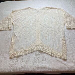 Chico's Cream/Beige Crochet and Mesh Semi Sheer Tunic Length Top Size 3