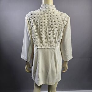 Chico's blazer with a textured design. Features a stylish open front. Perfect for layering.