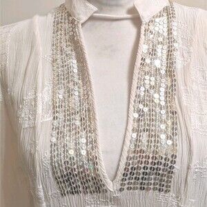 Chicos Creamy White Kimono Silk Tunic Dress Sequins Size 1