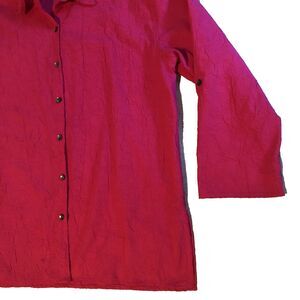 Chicos Crepe Gauze Shirt Womens Sz L Button Front Fuchsia Roll Tab Sleeve Blouse