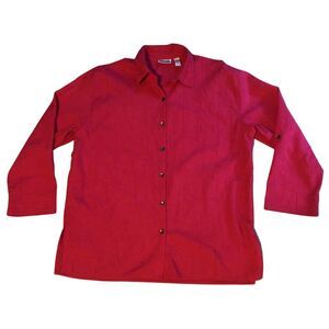 Chico's Hot Pink Button Up Shirt with Roll Tab Sleeves, Side Slits at hem, Crepe Gauze Poly Cotton Blend