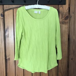 Chicos Crinkle Round Neck 3/4 Sleeve Top SZ 0 S Yellow Lime Statement Dopamine