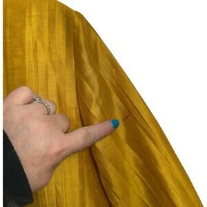 Nice pre-owned condition, however there are two spots on the back of one sleeve. Please use the zoom feature to see details for an accurate description. Spot on back sleeve near shoulder.