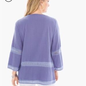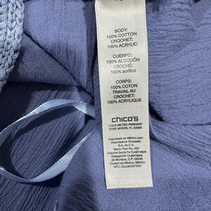 Light powder blue top with 3/4” length sleeves, tassel tie front, hand wash. Sz XS a bit oversized.