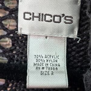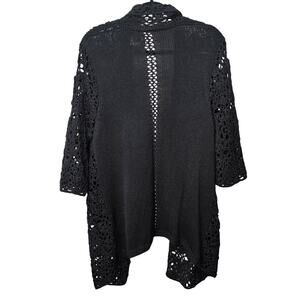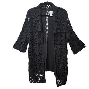 Chicos Crochet Knit Cardigan Sweater Women Large Black Bohemian Neutral Coquette