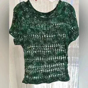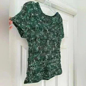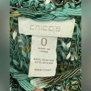 Chico’s Crochet Knit Open Weave Multi Color Short Sleeve Sweater Size O
