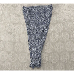 Chicos Crop Pants Sz 1.5 US 10 Blue Geometric Viscose Tencel Rolled Hem Pockets