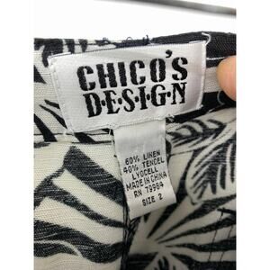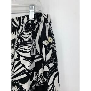 Chico's Cropped Pant Womens Sz 2 US L Linen Blend Black White Floral Print *FLAW