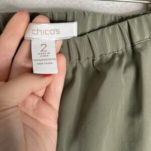 Chico's Cropped Pants Womens Size 2 Green Cinched Woven High Rise