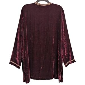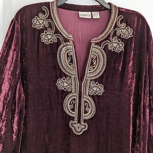 Chico's Crushed Velvet Embroidered & Beaded Long Sleeve Tunic Burgundy 2-L/12