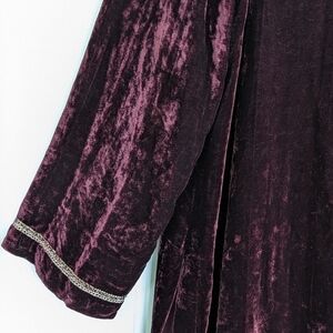 Chico's Crushed Velvet Embroidered & Beaded Long Sleeve Tunic Burgundy Size 2 L/12