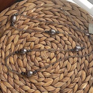 Chico’s Crystal Marcasite & Glass Beads Necklace Pewter Finish 39in Mob Wife