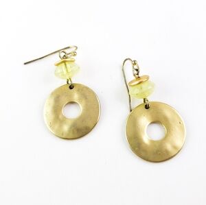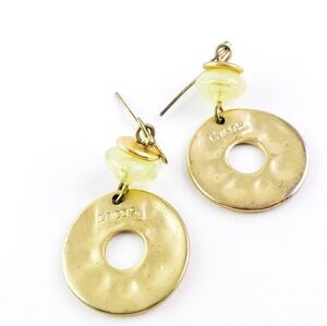 Chico's Dangle Earrings with hammered gold discs and pale green stones