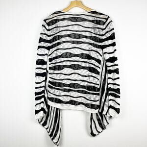 Chicos Darcy Drape Cardigan Sweater Black White Stripe Size Small