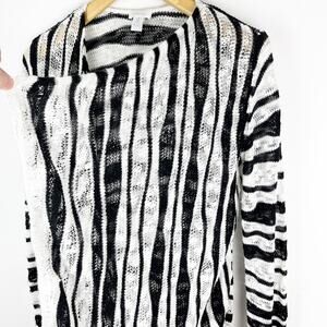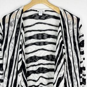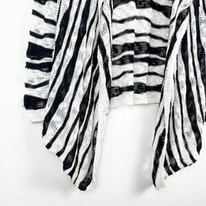 Chicos Darcy Drape Black & White Stripe Cardigan Sweater. Chicos size 0 which is equivalent to a Size Small/4. Open front light knit. No stains or rips. Length shown in pic. 19” pit to pit. 17” pit to cuff.