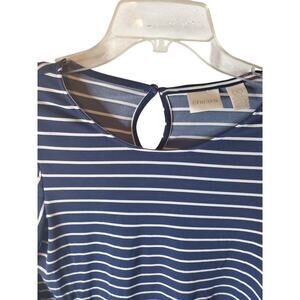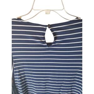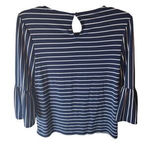Blue/white striped top with bell sleeve. Back button with keyhole.