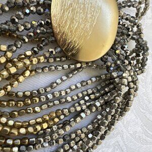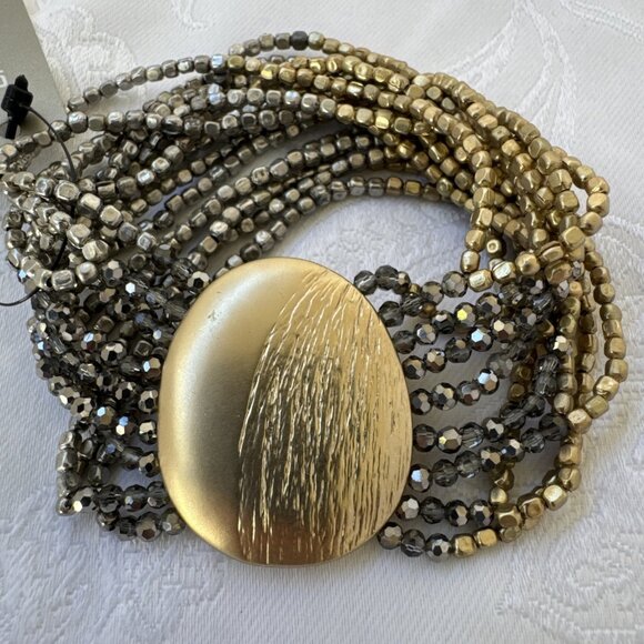 Chico's Dark Gold & Silvertone Stretch Beaded Shimmery Stackable Bracelet - NWT