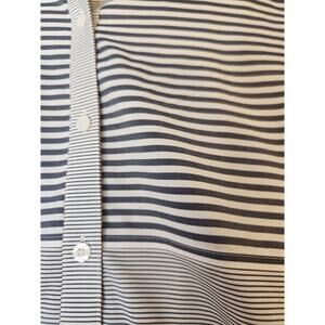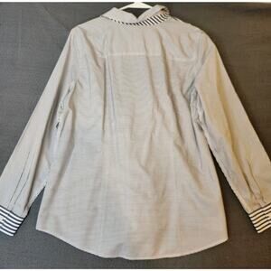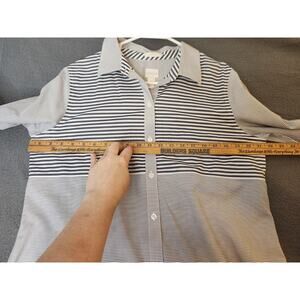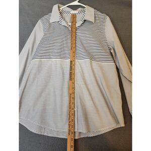 Chico’s Dark Gray Blue & White Striped Non Iron Button Down Shirt Sz 2 Large