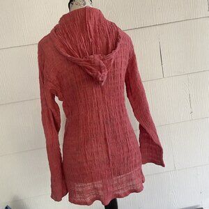 Chico’s Deep V-Neck Sheer Linen Scurunchy Hoodie Legenlook Women's Size 0 (H6)