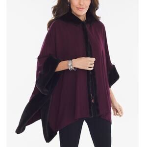 Chico’s Delphine Faux-Fur Ruana Hooded Poncho Women's One Size