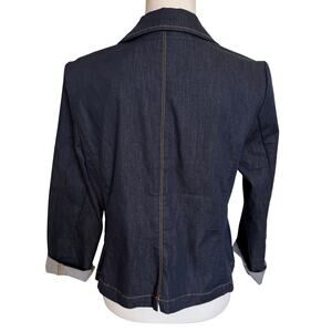 Chico's Denim Blazer Size 1 Small 8/10 Blue One Button Pockets Tailored Stretch
