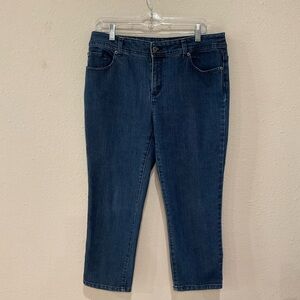 Chico’s Denim Crop Dark Wash Capri Rhinestone Pockets Women’s Size 8 (Chico's 1)