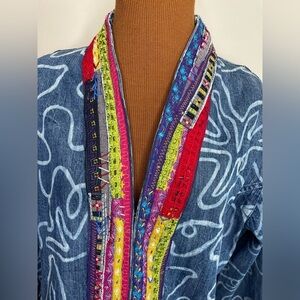 Chico’s Denim Embroidered Swirl Print Jean Jacket Size 2 (Large)