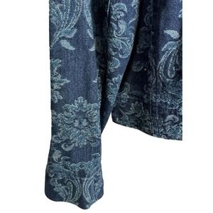 Chico’s Denim Jacket Floral size 2 All Cotton Lightweight Holiday Christmas