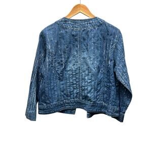 Chico’s Denim Jacket Sz 2 (L/12) Sequin Embellished Open Front Cropped Jean