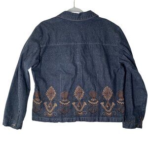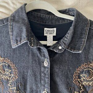 Chico's Denim Jacket Womens Size 2 Medium 12-14 Black Embroidered Lined Blazer