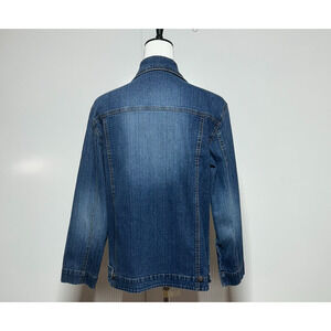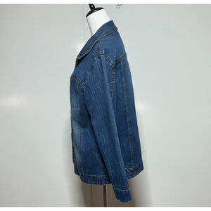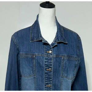 Chicos Denim Jean Jacket Womens Large 2 Blue Button Front Long Sleeve Stretch