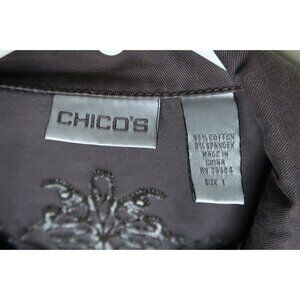 Chico's Denim Jean Trucker Jacket / Brown / Embellished bejeweled snap buttons and rhinestones on the back / Long Sleeves