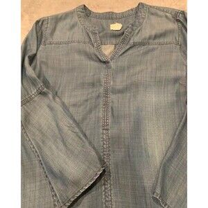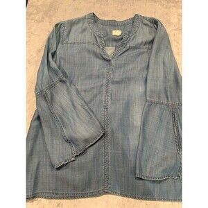 Chico’s Denim Sz 2 -Large Chambray Bell Sleeve Popover Top Gorp Core Lagenlook