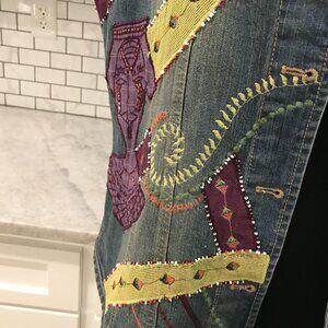 Chico's Denim Vest Womens Medium Blue Embroidered Applique Boho Button Front