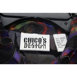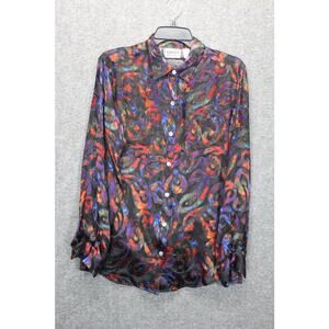 Chico's Design 1 US M Silk Blend Burnout Sheer ButtonUp Shirt Colorful Artsy
