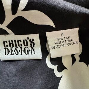 Chicos Design 100% Silk Floral Black White Midi Skirt Quiet Luxury Size 2 Large
