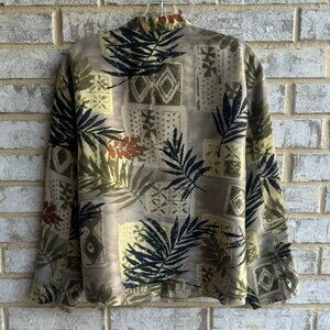 Chico's Design 100% Silk Long Sleeve Button Up Banded Collared Shirt Women's Size 2 (L).