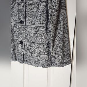 Chico’s Design 1/M Silver 100% SILK Embrodered Longsleeves Pockets Lined Buttons Up Women's Blazer