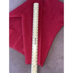 Chico’s Design 3 (XL) Size 16 100% Boiled Wool Reversible Red, Red Blk Animal Print Jacket Cardigan smal mark shown in photo on solid side does not go all the way through fabric. Please see photos for details. Chest 42-43”,