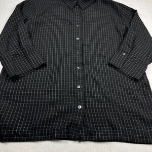 Chicos Design 3/4 Sleeve Button Down Shirt Plaid Casual Comfort Slit Top 2 LARGE