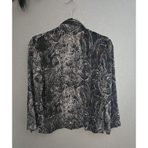 Chico's Design Black Abstract Print Silk Button Front Casual Top Woman Size 1 MD