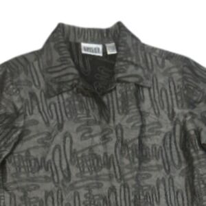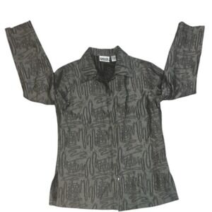 Chico's Design Black & Gray Button Down Top Abstract Print Blouse Size 0 (S)