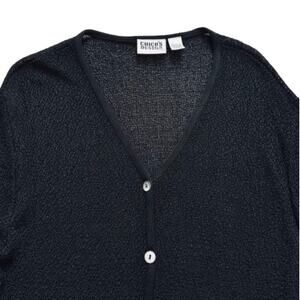 Chicos Design Black Open Weave Knit Button Front Cardigan Sweater Size M/L
