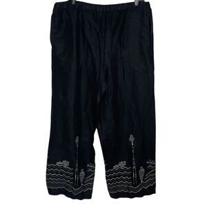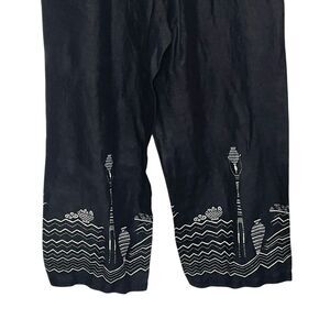 Chico's Design Black Printed Linen Trousers Womens 3 Wide Leg Pants Vintage