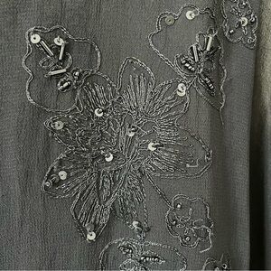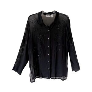 Chico’s Design | Black Sheer Sequined Beaded Floral Blouse, Size 2 (Large)