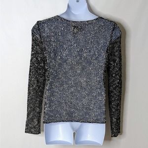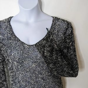 Chico's Design Black/Cream Open Weave V-Neck Pullover Sweater Women's Sz 1 (M)