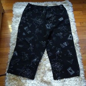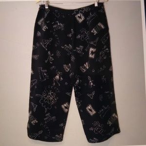 Chicos Design Blend Silk & Linen Cropped Women 3 Pants Novelty Print lognelook