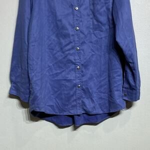 Chico's Design Blue Suede Long Sleeve Button Up Blouse Sz 2/L